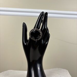 Bold adjustable black statement ring with a large gemstone. It is adjustable so could fit on any finger.