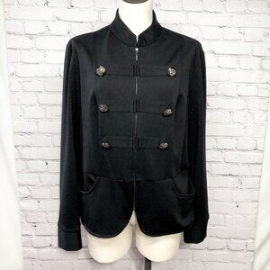 Black Steampunk Military Victorian Style Button Full Zip Long Sleeve Jacket L
