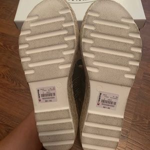 Worn only one time. Small discoloration on right sandal, bought from Buckle like that.