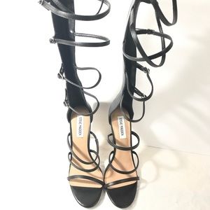 Brand new, never been worn. Shaft 15” with adjustable straps. Heel height 4.5” Size 6.5