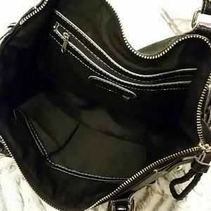 Used a couple of times - in good condition. Black satchel with gold hardware accents.