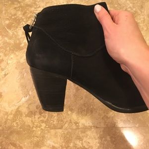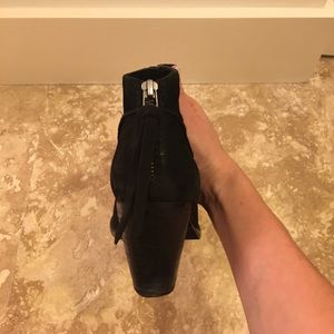 Black suede Steven by Steve Madden booties with small heel and zip up in the back