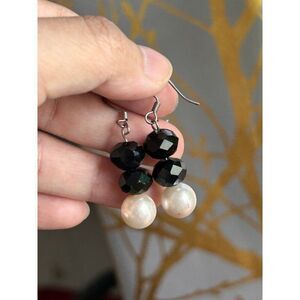 Black stone and pearl earrings Preowned 1.75” drop approx