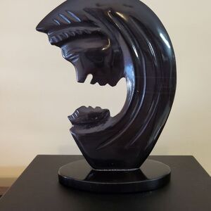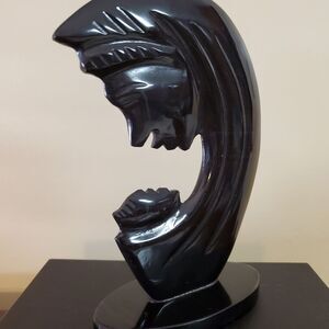 Black marble sculpture of Madonna holding her baby. A very unique piece.