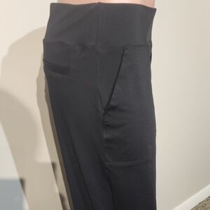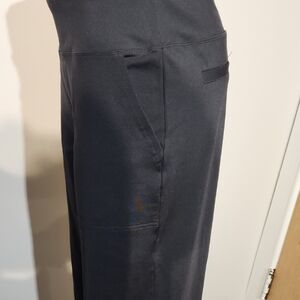 These black straight leg pants offer a comfortable fit with their wide elastic waistband and full-length design. Crafted from a soft, stretchy fabric, they provide a relaxed yet tailored silhouette suitable for various occasions.