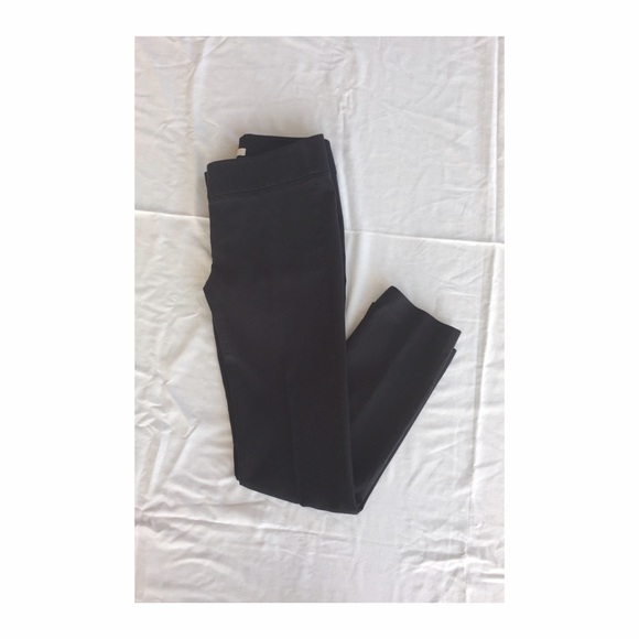Plain black pants with a straightleg silhouette. Slight fraying around back pocket, pictured.