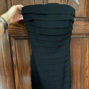 Black strapless with flattering pleating/layered detailing