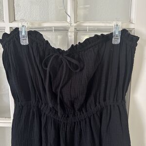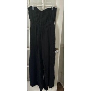 Black Strapless Jumpsuit Women's 1X Crinkle Wide Leg Tie Waist NWT