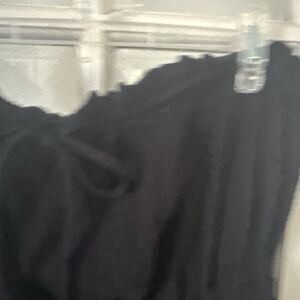 Black Strapless Jumpsuit Women's 1X Crinkle Wise Leg Tie Waist