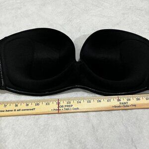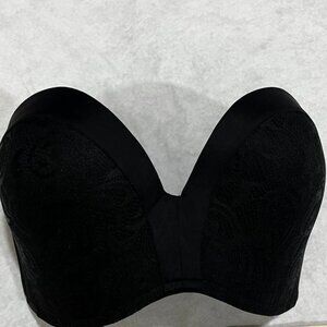 Black Strapless Lace Balconette Bra Structured Push-Up Underwire Top 36E