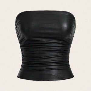 Elevate your style with this chic black strapless top. The ruched design adds a touch of elegance, perfect for any occasion.
