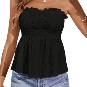 Black Strapless Ruffle Top