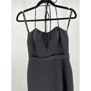 Gorgeous Dress in like-new condition. Understated and elegant with black jewels on front. Can be tied as a halter or ties can be tucked in to wear as a strapless dress.