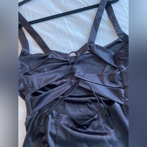 Black, Free People polyester dress. gorgeous lace up back detail – the silhouette gently flares out at the thighs as you can see in the photos. Brand new, never worn, smokefree, and pet free home.