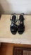 These black high heel sandals feature a sleek strappy design with an open toe and a secure ankle strap. Crafted from a smooth, glossy material, they offer a sophisticated look for any occasion. The intricate strap pattern adds a touch of elegance to your ensemble.