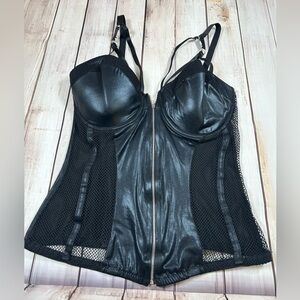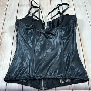 Elevate your style with this chic black strappy mesh corset top. Perfect for a night out, this top combines edgy design with comfort.