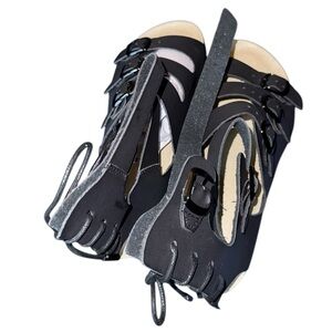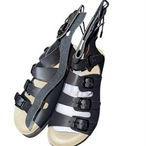 Stylish black sandals with multiple straps and buckles. Perfect for casual wear.