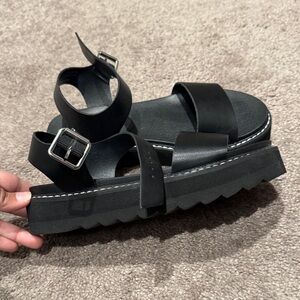Stylish black platform strappy sandals with buckle closure. Perfect for casual outings. Never worn