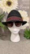 Black Straw Fedora Hat with Red/Cream/Blue Striped Trim
