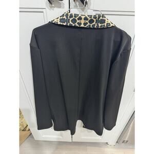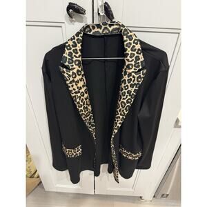 Black Stretch Blazer With Animal Print Trim Size Xl