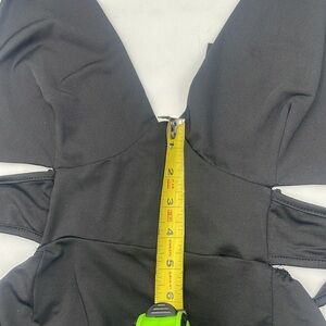 Lined Bra top with 3" Dart Measures: 10" long (see pic) 7" wide. Stretchy fabric makes for versatile fit. Adjustable fit with all the strap ties.