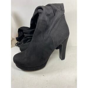 Step out in style with these brand new, never-worn black stretch platform knee-high boots! Designed for women with a size 9.5W, these boots combine comfort and fashion effortlessly. The stretch material ensures a snug and flattering fit, while the platform sole adds a trendy edge and provides extra height.