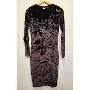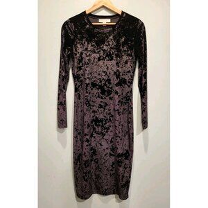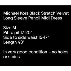 Black Stretch Velvet Long Sleeve Pencil Midi Dress Goth Witchy Michael Kors Sz M