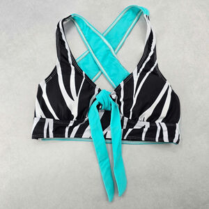 Black Stripe Crisscross Tie Sports Bra Bikini Beach Bralette Swim Top S Small