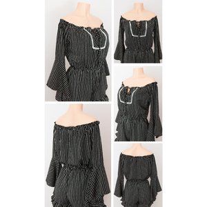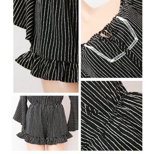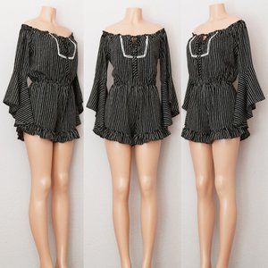 Black Stripe Off Shoulder Bell Sleeves Boho Romper