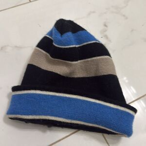 Black Striped Beanie - BRAND NEW - Fits All - Winter Hat - Black Blue Tan - Never Worn