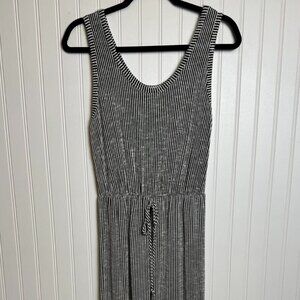 Black Striped Sleeveless Jumpsuit Jogger Style, Drawstring Waist