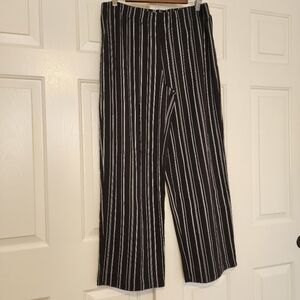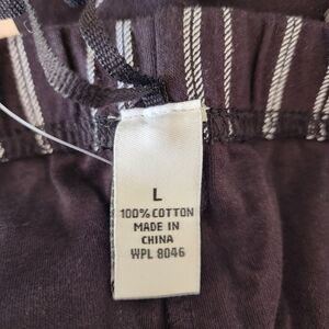 Black Striped Wide Leg Elastic Waistband 100% Cotton Women's Pants Size L NWT