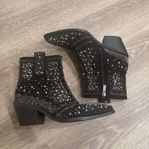 Elevate your style with these chic black studded ankle boots. Perfect for any occasion, they offer both comfort and elegance.