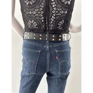 Black Studded Grommet Belt Faux Leather Punk Metal Style Fashion size XS