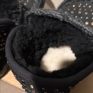Cozy black moccasin slippers with studded details. Perfect for lounging at home. Stylish and comfortable. NEW WITH OUT BOX