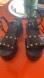 Black Studded Platform Sandals ankle strap studs flat form 8