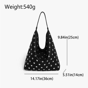 Black Studded hobo large Bag grommets studs silver slouchy bag
