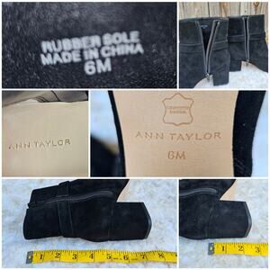 Ann Taylor Breanna Square Toe Bootie Size 6 Black Suede Leather Zip Buckle Heel