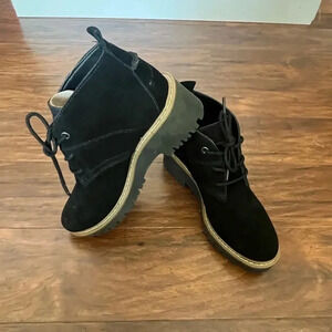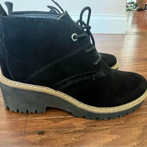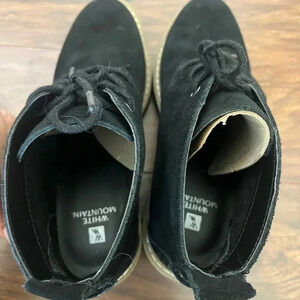 This is a brand new pair of boots, never worn, no tags, no original box. This is the Danny boot by White Mountain size 6.5. The upper is all leather. It is a soft black suede, the sole is synthetic. This is a lace up ankle boot. Perfect with a cute Summer dress or a Fall/ Winter wardrobe. All of my items come from a smoke-free home. Considered offers are always welcome. You will find that my items are priced much cheaper than what she would pay retail for. Thanks for stopping by.