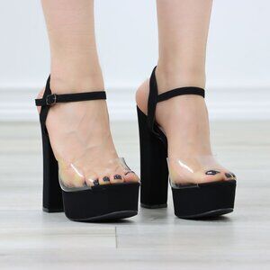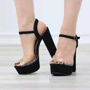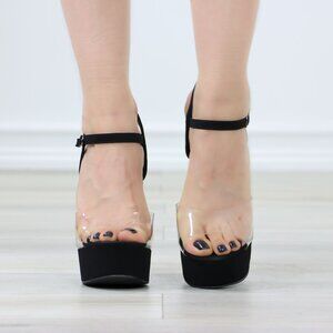 -Accents: Platform Sole, Platform Sexy Heels, Dancer Shoes, Dancer Heels, Stripper Shoes ,Exotic Dancer Shoes, Stilettos, Lucite Transparent Materials, Goth, Clear Toe Strap