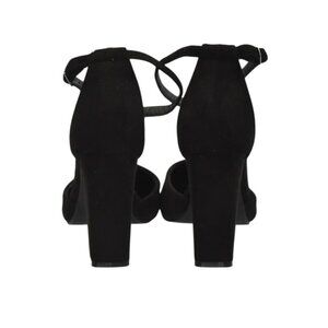 Black Suede High Heel Shoes Womens 10 Block Heel Ankle Strap Pointed Toe