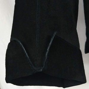 Vintage relaxed fit black suede jacket, has split flipped cuffs. This is a very soft light weight suede. Brand is OUTFIT JPR. Size L. Good used condition. Button shanks are a bit long but could easily be shortened.