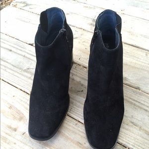 Brand new Jeffrey Campbell booties. Black suede with stacked heel. Side zip with elastic detail. Heel height approx 3 inches