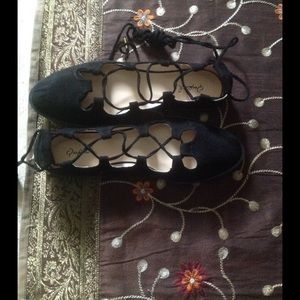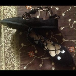 Black Suede Lace Up Ballet Flats BRAND NEW WIT BOX