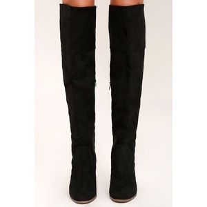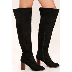 Pair With leggings, jeans, or your favorite dresses, there's no one way these Tan Suede Over the Knee Boots! An almond toe upper and 23" OTK shaft are all made from vegan suede. Notched collar has 14" interior circumference below the knee. 9" zipper at the instep.