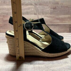 Black Suede Peep Toe Wedge Sandals By LifeStride Flex Memory Foam- Size 8W