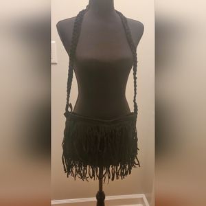 Black Suede Purse with Fringe - No Brand