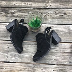 This versatile slingback mule will keep your seasonal style right on track. Suede leather upper with a ruched-style instep design