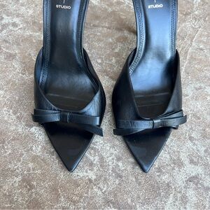 Black Suede Studio Brea Pointed Toe Sandal Black Leather Sz 40