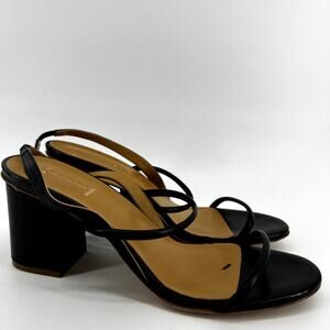 Black Suede Studio Slingback Heel Sandal Strappy Round Open Toe Black EU 40 US 9